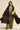 An olive green wool peach outfit featuring various embroidery elements, styled with a mid-length shirt and farshi shalwar for a playful yet polished look.