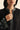 A refined black wool peach long shirt accented with delicate embroidery on the sleeves and neckline, paired with culottes for a sleek silhouette.