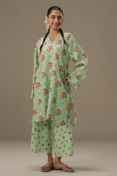 A fresh green printed cambric cross-stitch, detailed with soft, light embroidery. Paired with matching cambric culottes, this look feels easy, modern, and effortlessly put together.