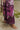 The dupatta features blue and mulberry roses with a purple border on a mulberry base. The shirt is printed with mulberry rose and floral motifs in pink and mulberry tones. The trouser is finished with mulberry scalloped borders on mulberry.